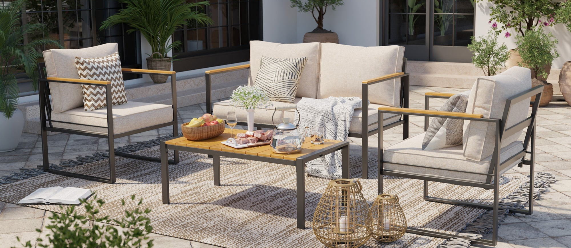 We use materials like eco-friendly PE resin wicker, solid steel & aluminum structure