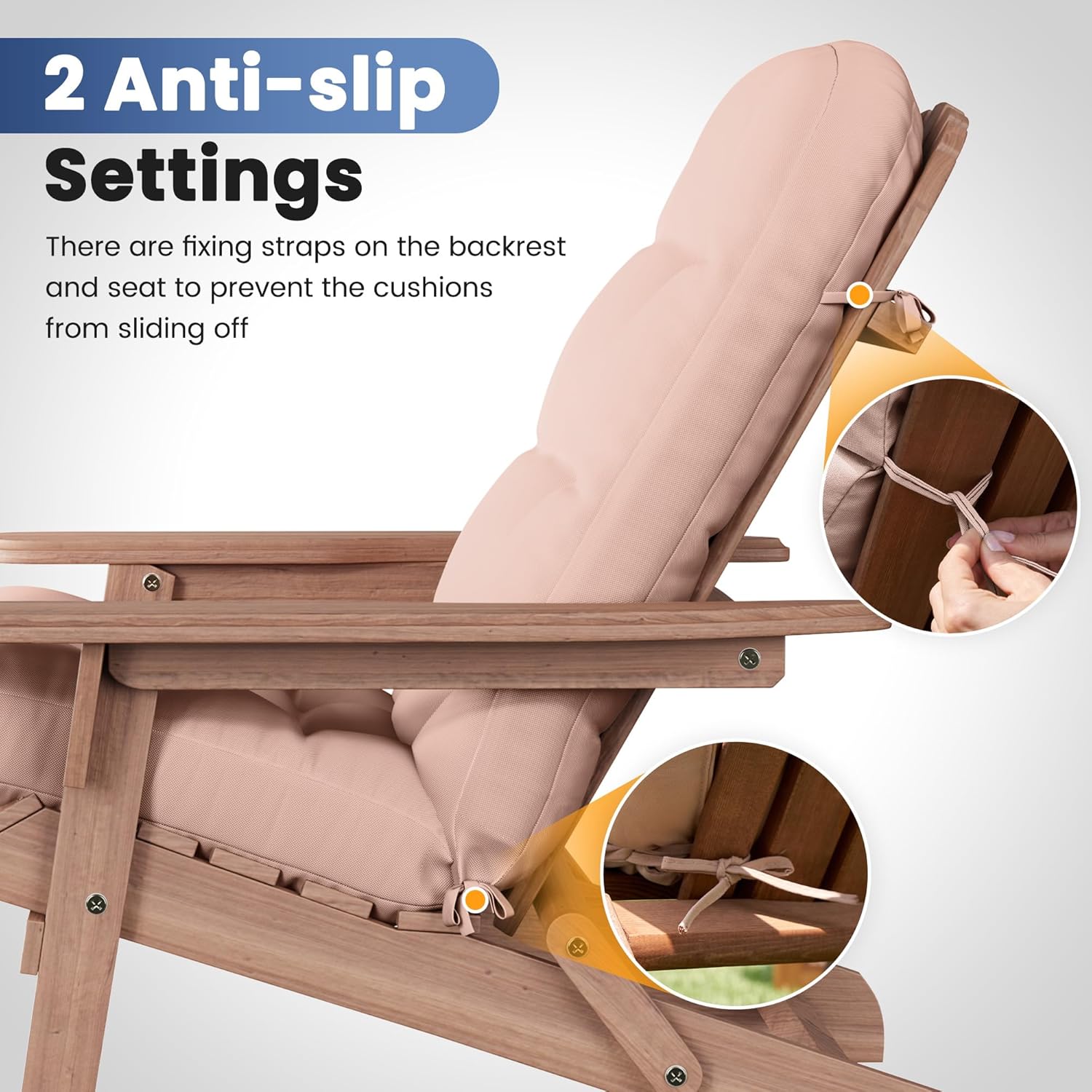 Amopatio Adirondack Chair Cushions 4" Thick Set [2-Pack] - Outdoor Cushions for Patio Furniture, Contoured Design with Anti-Slip Straps & Water-Resistant Fabric for Adirondack Chairs, Khaki