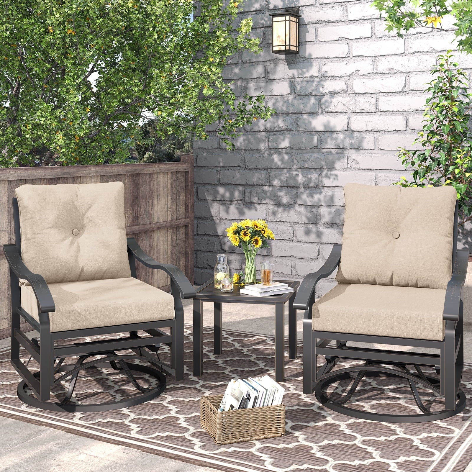 ELPOSUN 3-Piece Outdoor Patio Set with 2 Metal Swivel Rocking Chairs & Coffee Table - Beige Cushions, Durable Garden Furniture for Porch, Backyard, or Deck