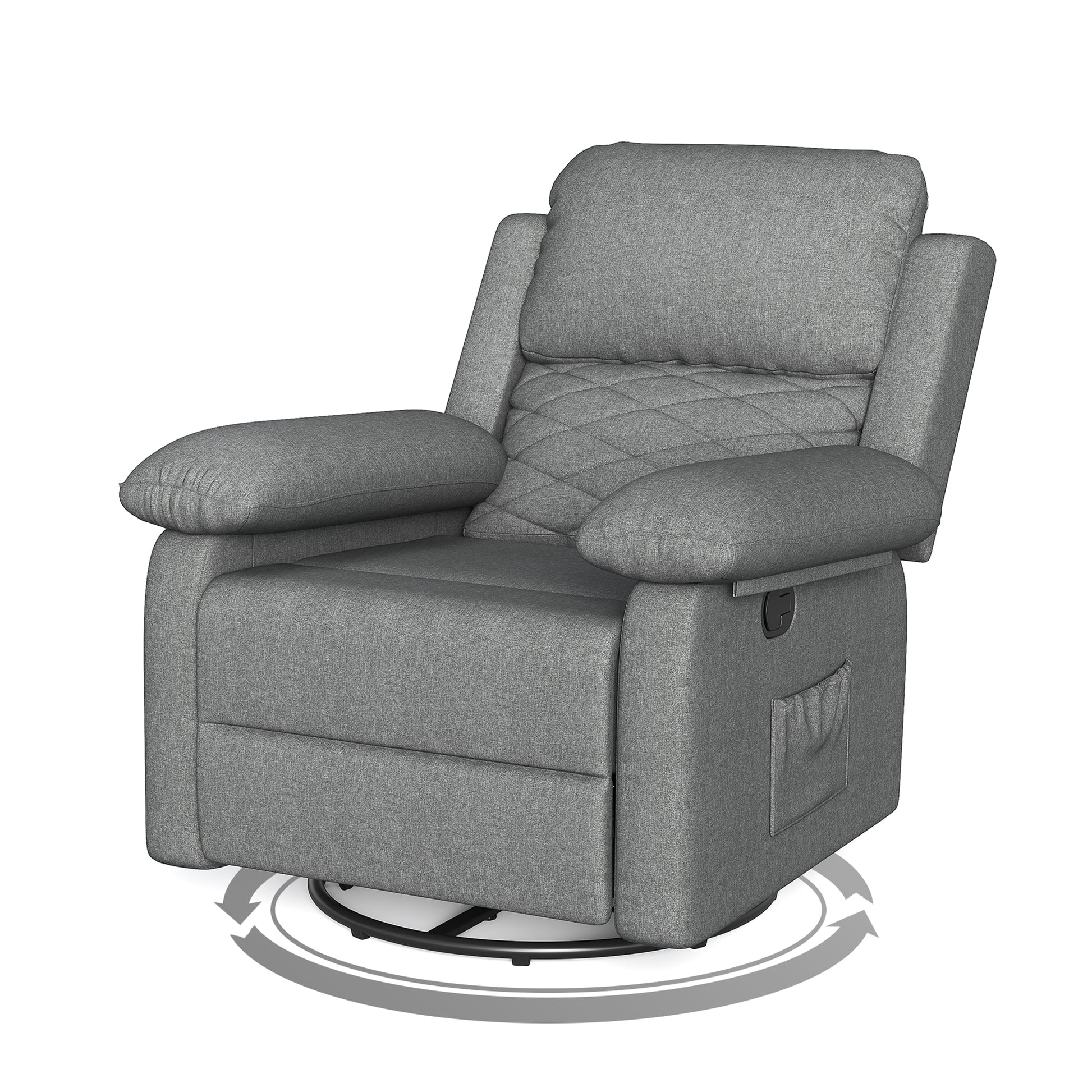 Glider Recliner for Adult Indoor Upholstered Lounge Nursery Chair Swivel Single Sofa with Side Pockets for Living Room Bedroom(Grey)